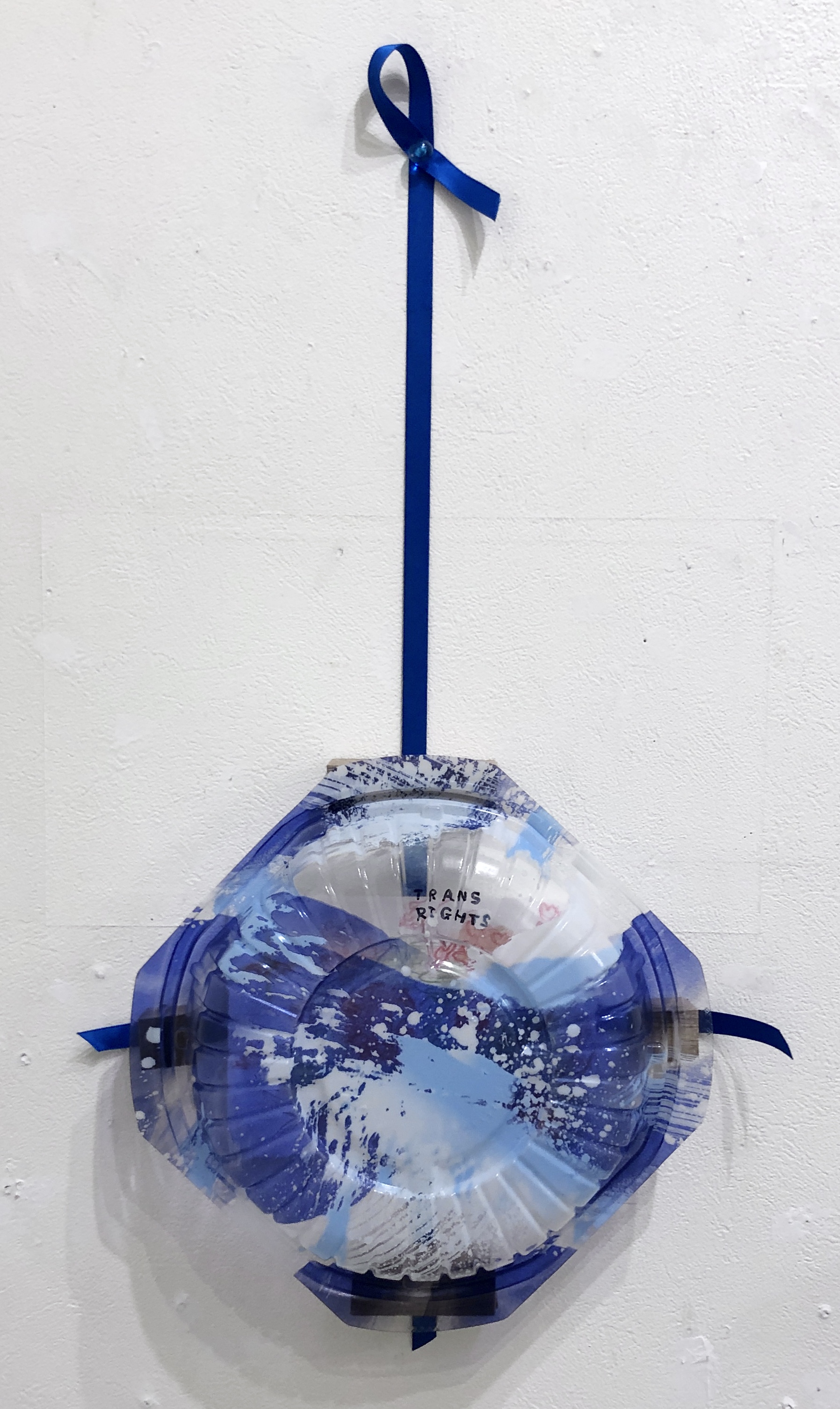 プラスチック容器、リボン、紙に色鉛筆、マーカー